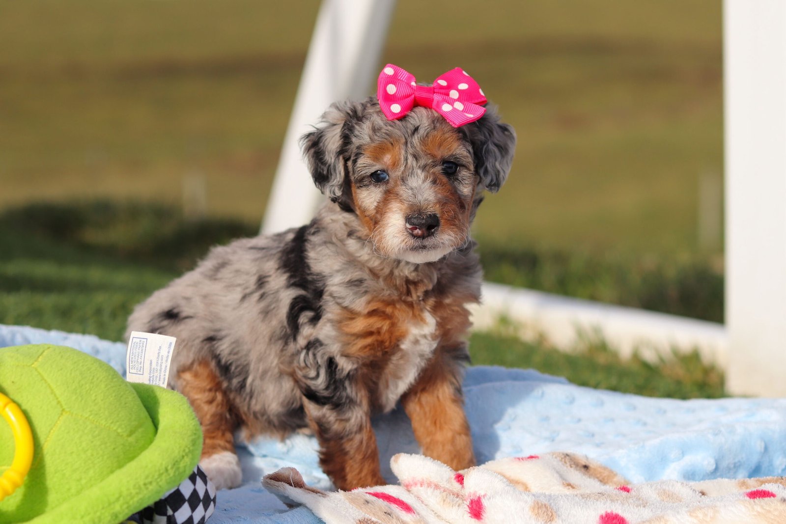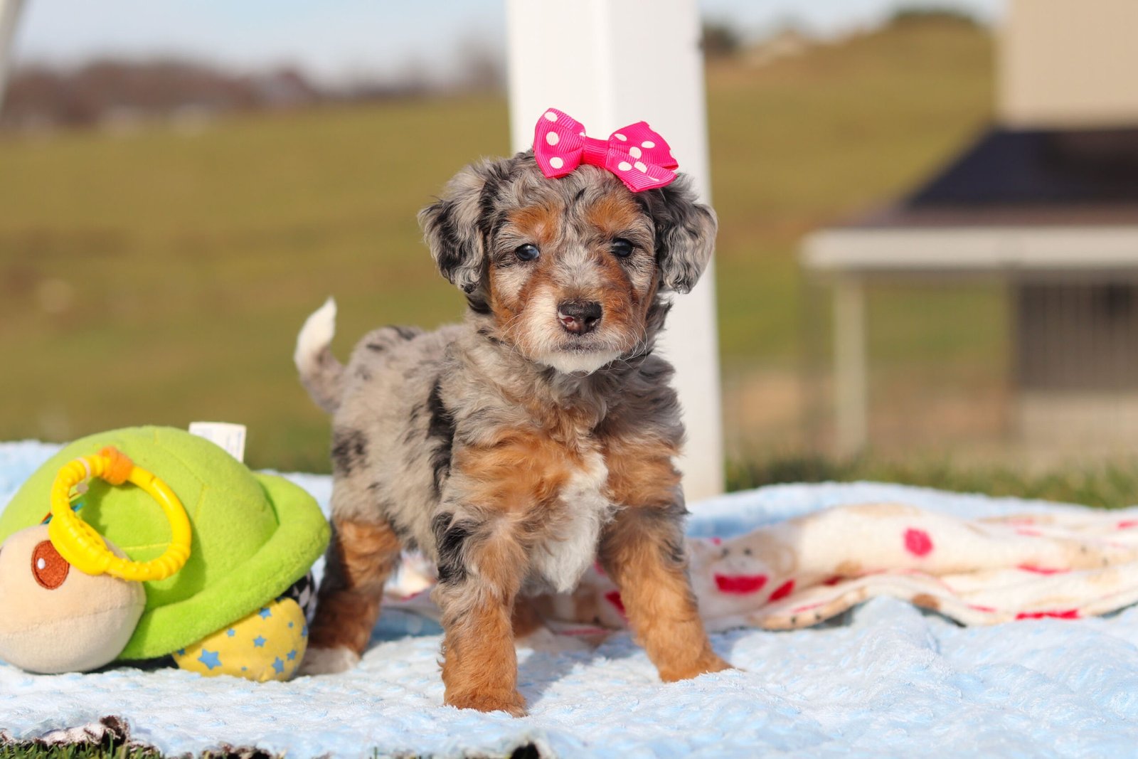Meet Emmie, an adorable F1B Mini Bernedoodle puppy with a heart as big as her fluffy curls. Full of sweetness and playful charm, she loves exploring, making new friends, and settling in for cozy cuddle time. With her soft, wavy coat, bright eyes, and affectionate personality, Emmie is sure to bring joy, love, and plenty of happy tail wags to her future family.