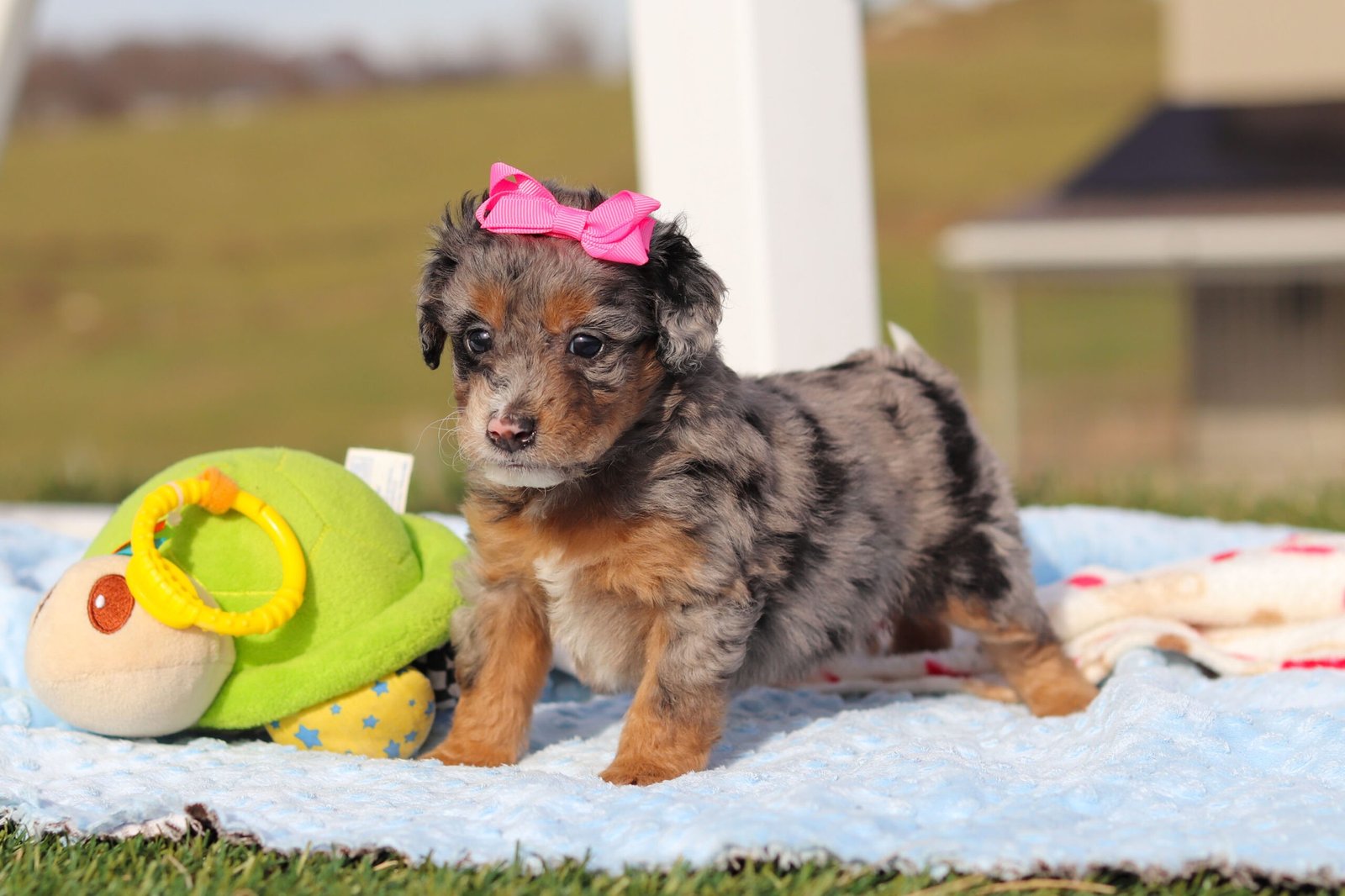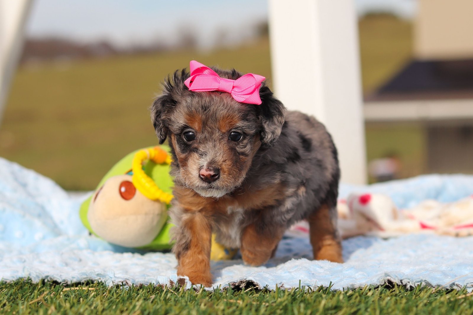 Meet Eve, an adorable F1B Mini Bernedoodle puppy with a heart as big as her fluffy curls. Full of sweetness and playful charm, she loves exploring, making new friends, and settling in for cozy cuddle time. With her soft, wavy coat, bright eyes, and affectionate personality, Eve is sure to bring joy, love, and plenty of happy tail wags to her future family.