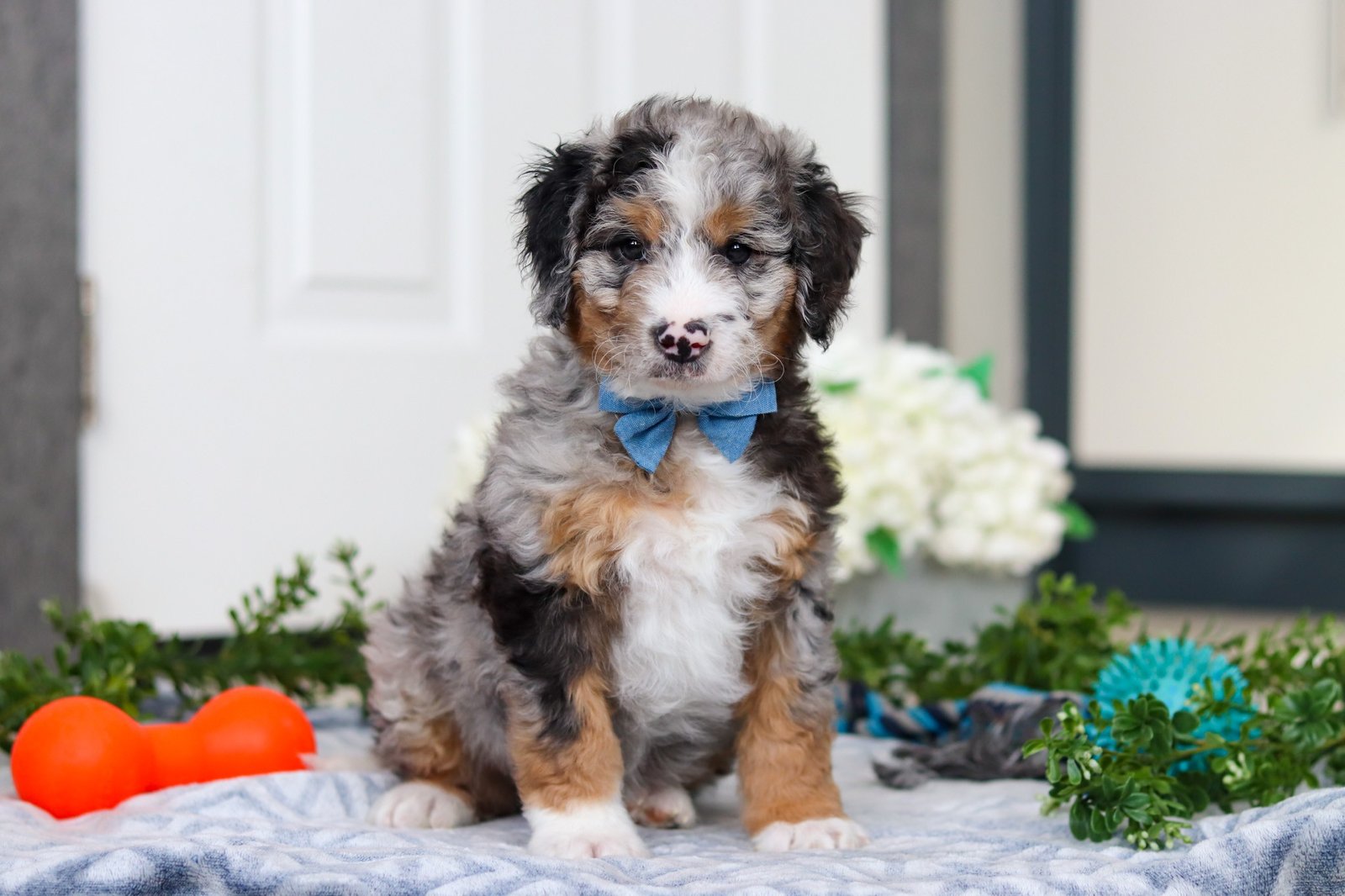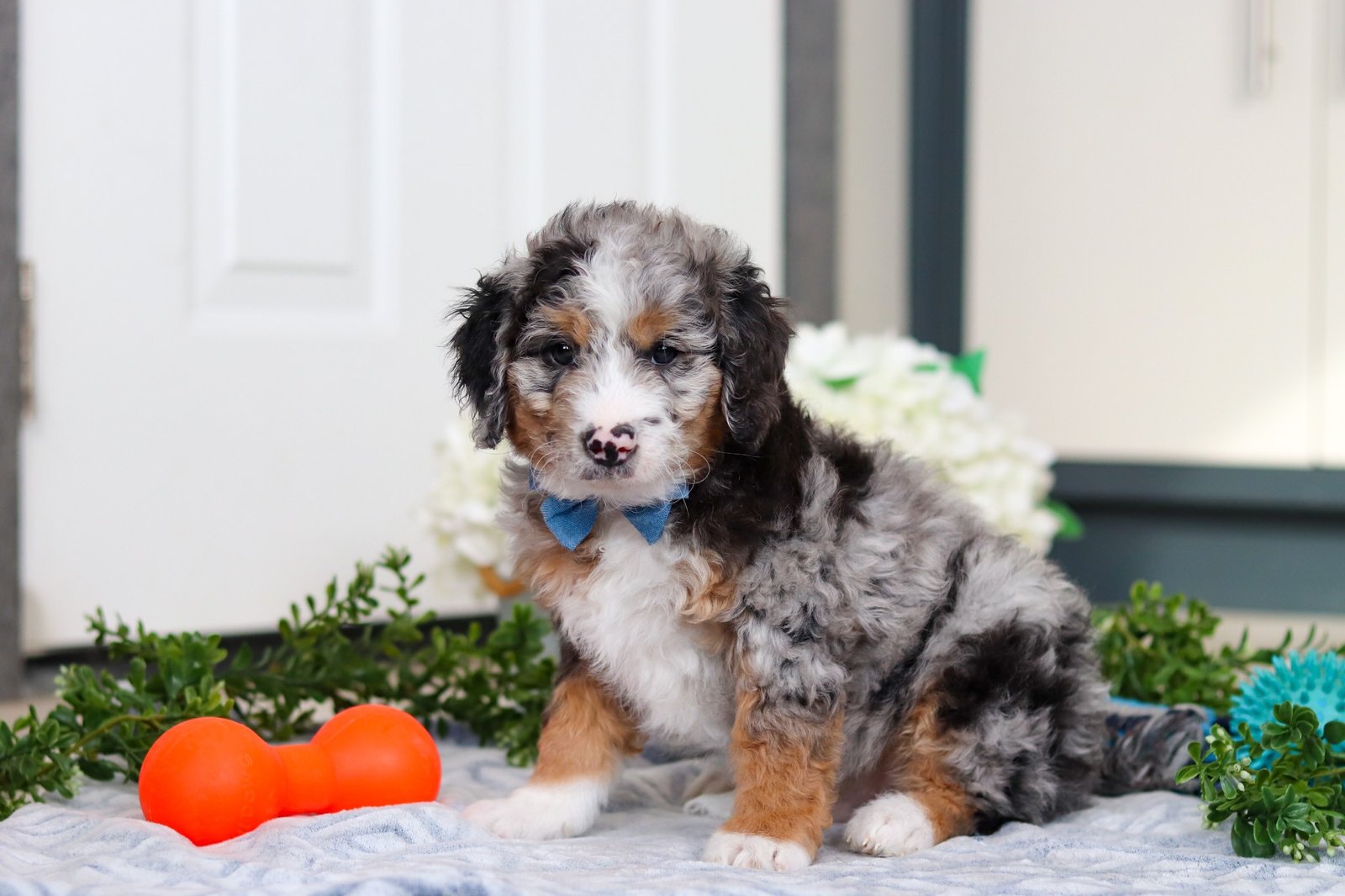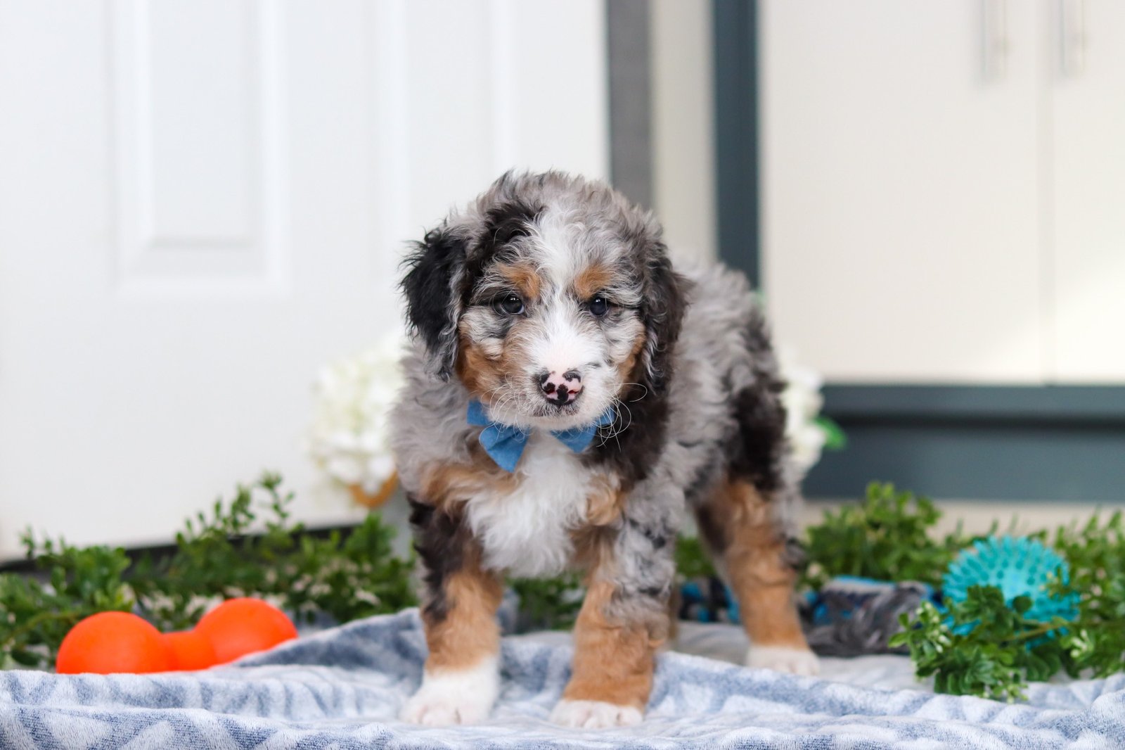 Introducing Jordon, a beautiful F1B Mini Bernedoodle puppy—full of personality and ready to melt your heart! He’s the perfect blend of the Bernese Mountain Dog’s gentle nature and the Poodle’s intelligence. Bernedoodles are well known for their affectionate, loyal, and playful spirit, making them wonderful companions for families or individuals alike. Whether it’s romping in the yard, going for a walk, or curling up for a nap, he’ll be happiest just being by your side. These pups are also quick learners who thrive on love, attention, and plenty of interaction!