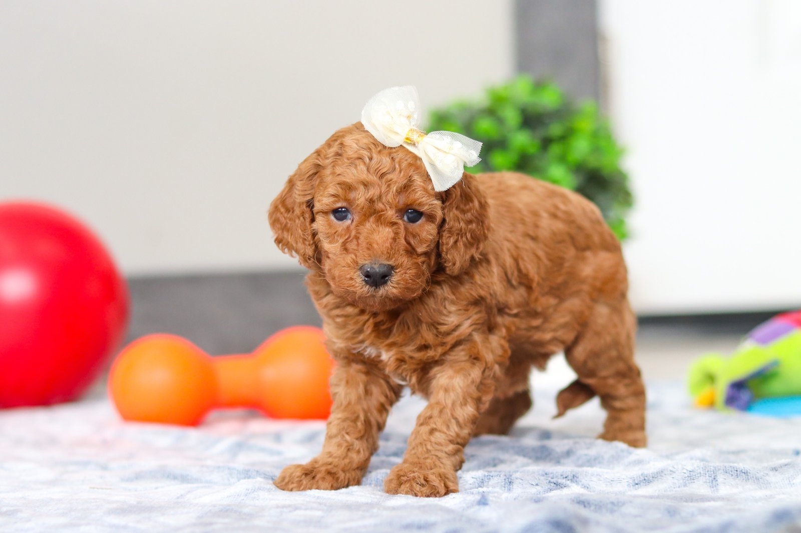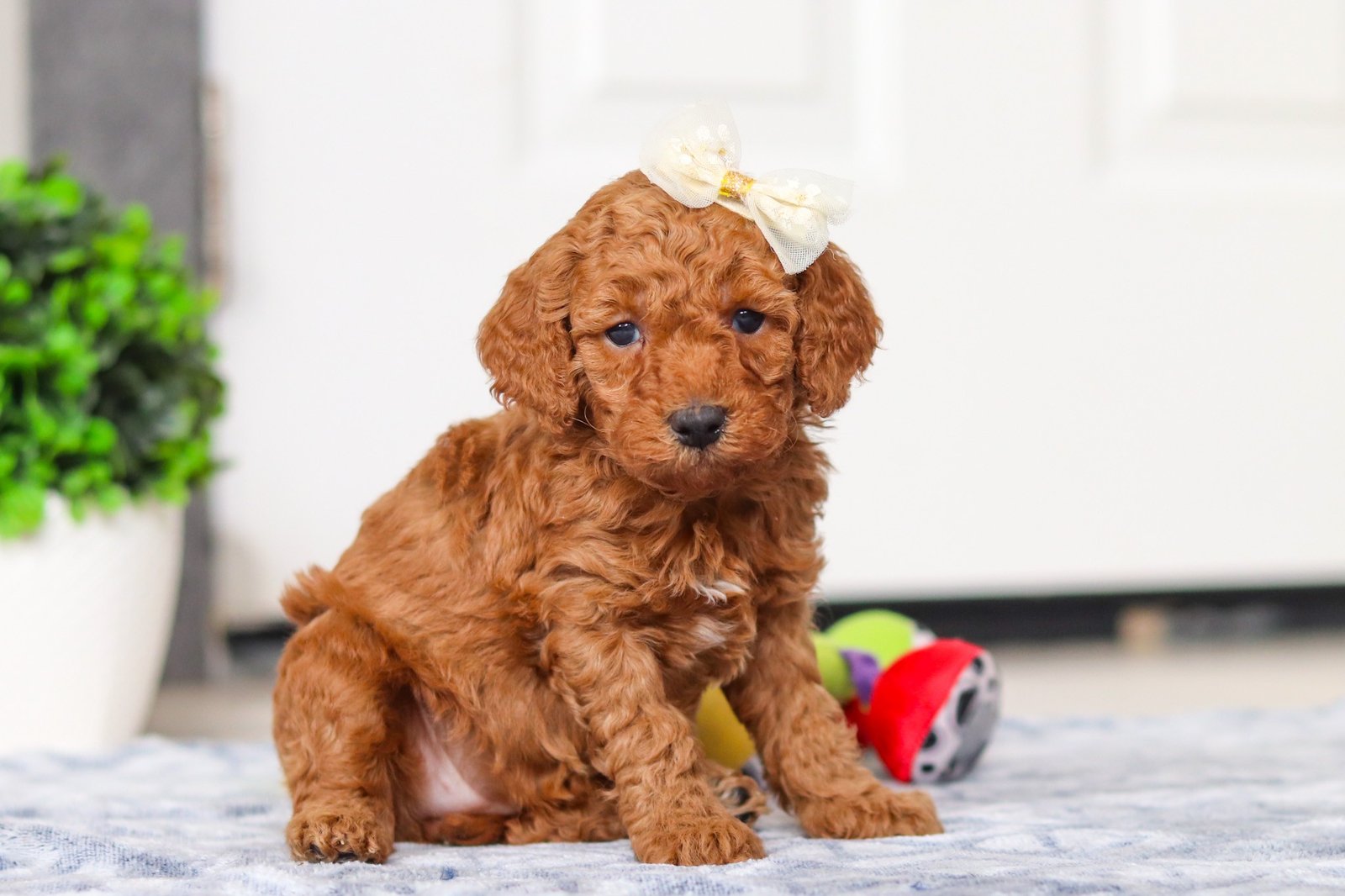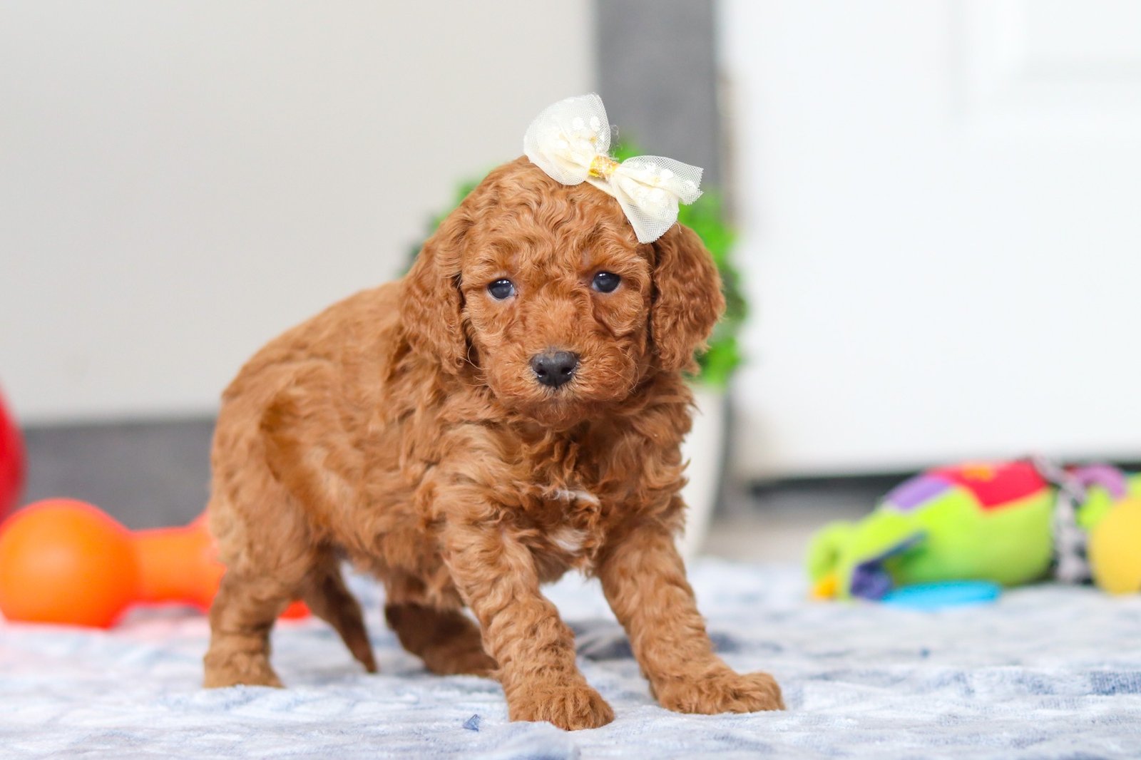 My mommy’s name is Cassie, and she’s a beautiful 16-pound Mini Goldendoodle with the sweetest personality and the softest, fluffiest curls. She loves being around her people and has such a gentle, loving heart. My daddy is Alex, and he’s a handsome 12-pound Mini Poodle with a smart mind and a playful spirit. He’s super friendly and always so proud. I’m lucky to have such wonderful parents, and I think I got the best traits from both of them — their good looks, their sweet nature, and their happy, loving personalities!