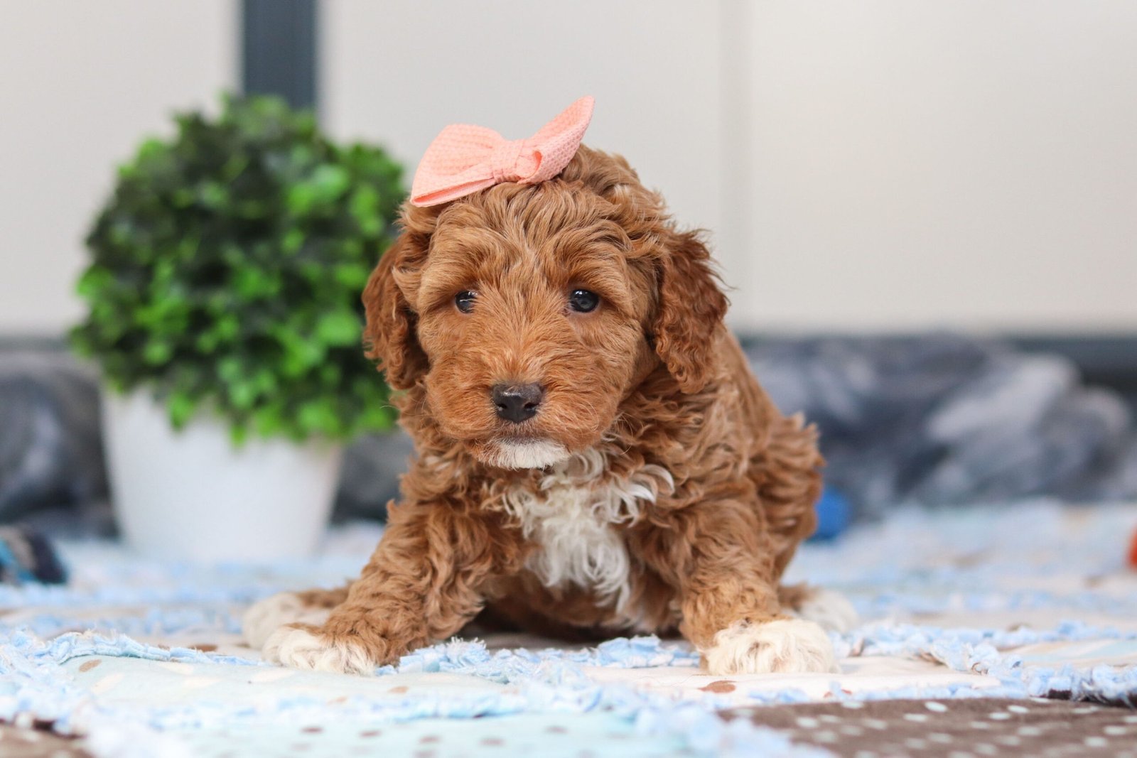 I come from the sweetest parents ever. My mom, Jazzie, is a beautiful 21-pound Goldendoodle with a loving heart and the softest curls, and my dad, Billy, is a handsome 18-pound Poodle who’s super smart and so gentle. I get my cuddly, friendly personality from my mama and my brains and bouncy energy from my daddy. I’m so lucky to have such wonderful parents, and I can’t wait to grow up to be just like them!