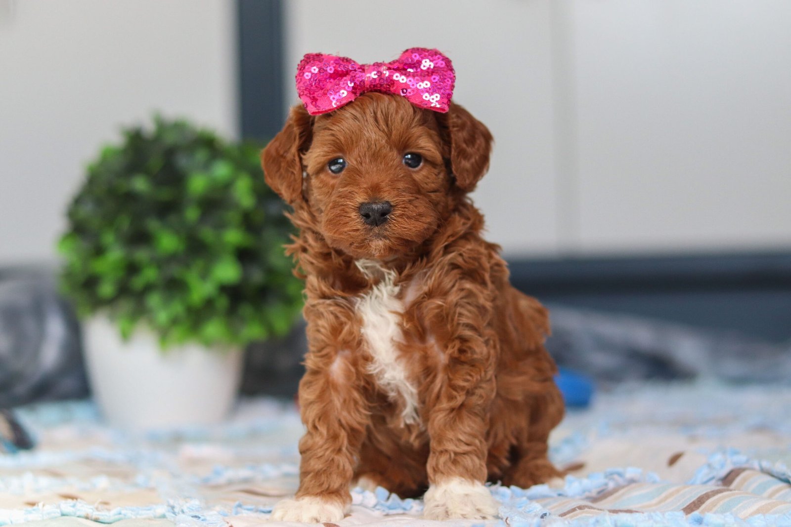 Hi! I’m Nikki, a very cute little Goldendoodle puppy with the softest, fluffiest fur and the happiest wagging tail you’ve ever seen. I love giving sweet puppy kisses, following my favorite humans everywhere they go, and curling up for cozy snuggles after a fun play session. I’m playful and curious, always ready to chase a toy or explore something new, but I’m also gentle and full of love. I can’t wait to grow up by your side and be your loyal, cuddly best friend forever!