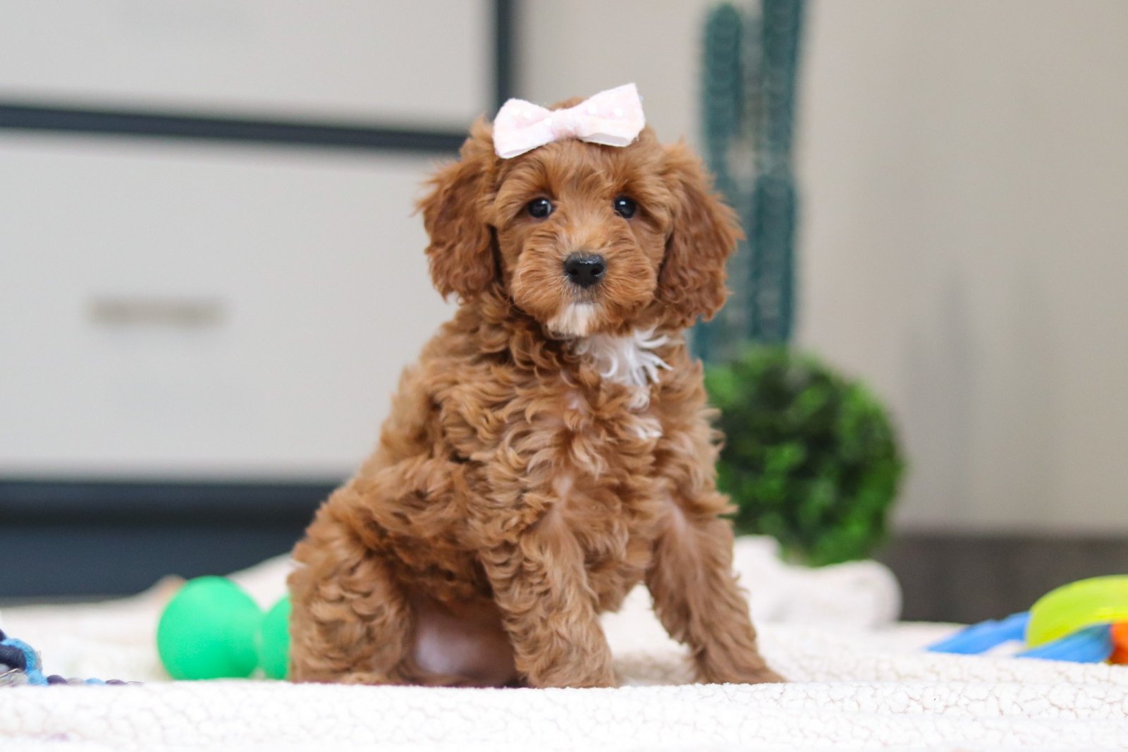 I come from the sweetest parents ever. My mom, Jazzie, is a beautiful 21-pound Goldendoodle with a loving heart and the softest curls, and my dad, Billy, is a handsome 18-pound Poodle who’s super smart and so gentle. I get my cuddly, friendly personality from my mama and my brains and bouncy energy from my daddy. I’m so lucky to have such wonderful parents, and I can’t wait to grow up to be just like them!